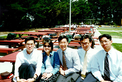 I don't remember taking this picture. But how random. It's Paul Lee, Eunice (Kevbo's sister) Lee, Kevin Lee, David Hong, and me. Except for Dave, we all went to KFBC. Random.
